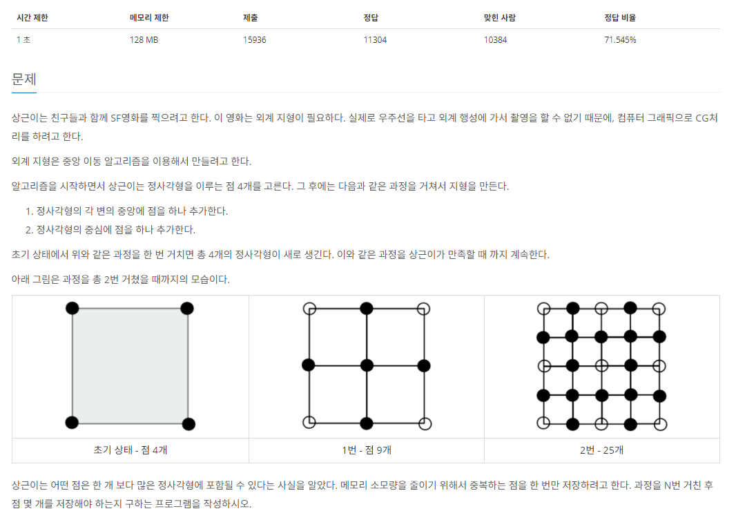 정사각형이 중복 되니 마니 이래저래 말이 많지만 결국에는 점의 수를 구하는 문제.