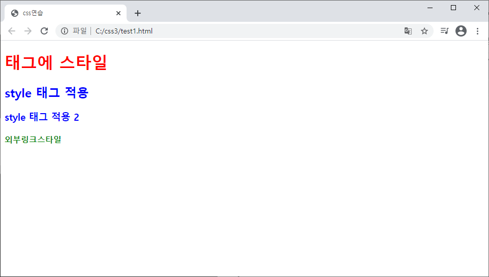 1. 각 태그에 직접 style 속성 부여하여 스타일 적용.