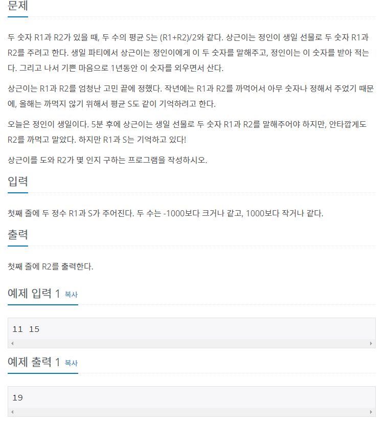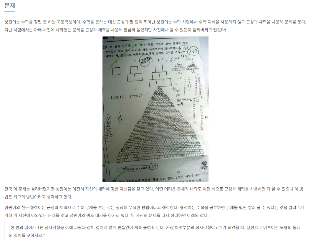 정사각형을 이어 붙인 후 도형의 둘레를 구하는 문제. 합쳐진 도형의 상 하 좌 우면을 나눠서 계산하면 간단하다. 빨간 부분 (윗변) 을 이어붙이면 아랫변과 같음을 알 수 있고, 파란부분(우변)을 이어붙이면 층 수와 같음을 알 수 있다. 좌변도 마찬가지이므로 결국 구하고자 하는 값은 가장 아랫부분의 정사각형 수 x 4 가 됨을 알 수 있다. 이제 코드를 작성해보자. import java.util.Scanner; public class Main { public static void main(String[] args) { Scanner sc = new Scanner(System.in); int n = sc.nextInt(); long sum = (long) n * 4; System.out.print(sum);..